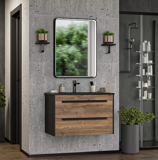 Brevita Тумба с раковиной Monsour 80 подвесная дуб галифакс олово/черный кварц