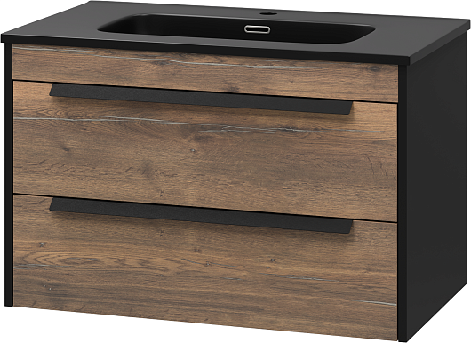 Тумба под раковину Monsour 80 подвесная дуб галифакс олово/черный кварц
