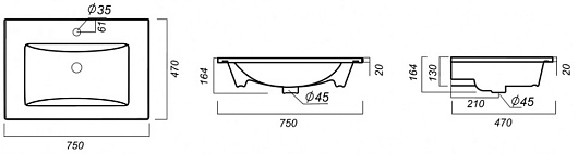 Мебельная раковина Quadro 75