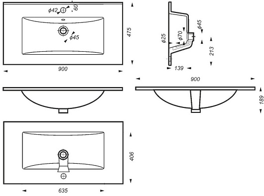 Тумба с раковиной Brevita Rock 90 - арт. ROCK-06090-50-2 / QDR90SLWB01.