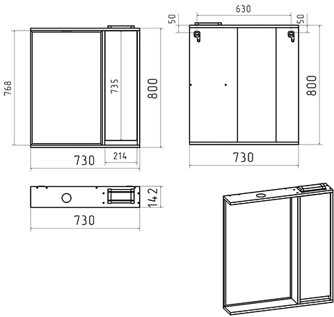 Комплектация: зеркальный шкаф, комплект креплений.