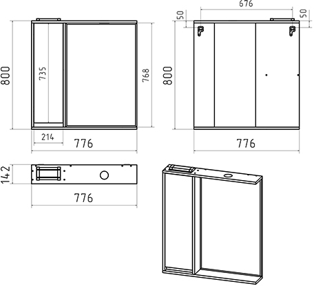 Комплектация: зеркальный шкаф, комплект креплений.