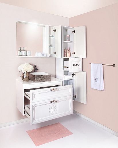 - Тумба Адель 85: 2 выдвижных фасада, ручки хром, система плавного выдвижения.
