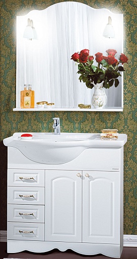 - тумба под раковину Бриклаер Анна 90 белая L: ручка - 6 шт., выдвижной ящик - 4 шт., распашная дверца - 2 шт.