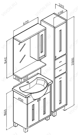 - Тумба с раковиной Бриклаер Бали 60: раковина, распашной фасад - 2 шт., ручка - 2 шт.