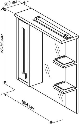 Зеркальный шкаф Бали 90 R светлая лиственница