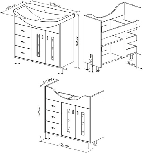 - выдвижной ящик-3 шт.