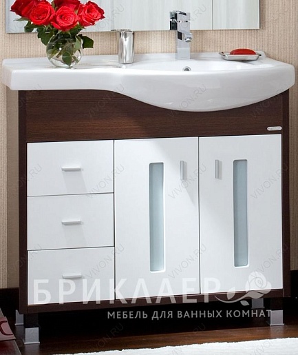 - Тумба с раковиной Бриклаер Бали 90 R: раковина, распашной фасад - 2 шт., выдвижной ящик - 3 шт., ручка - 5 шт., вкладная полка