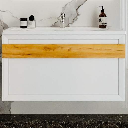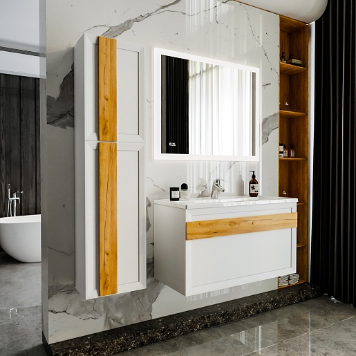 Бриклаер Мебель для ванной Берлин 100 белая с ручкой дуб золотой