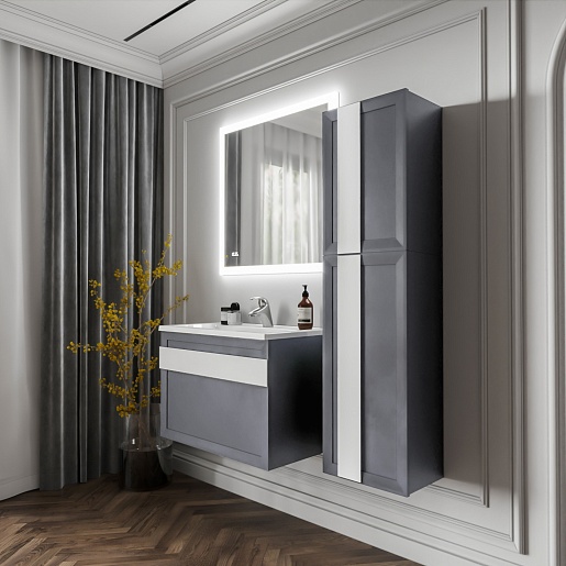 Бриклаер Мебель для ванной Берлин 80 оникс серый с белой ручкой
