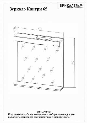 - Зеркало Кантри 65: полочка, встроенный светильник