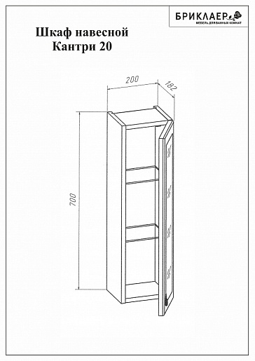 - Шкафчик Кантри 20: распашной фасад, полочки