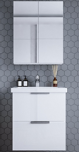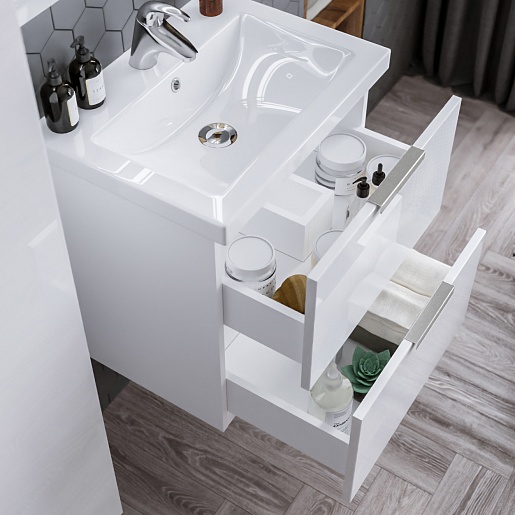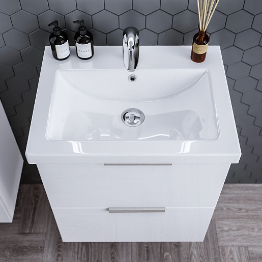 Подвесная тумба с раковиной Бриклаер Хелена 60 белая глянцевая - арт. 4627125416354 / 4627125414435.