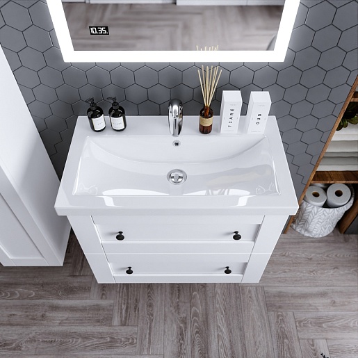 Подвесная тумба с раковиной Бриклаер Хелена 80 рамочная белая - арт. 4627125416415 / 4627125414459.