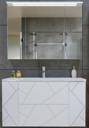Комплектация: тумба под раковину, раковина, зеркальный шкаф, крепления.