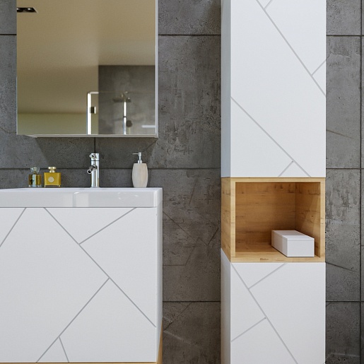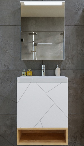 Комплектация: тумба под раковину, ниша, раковина, зеркальный шкаф, крепления.