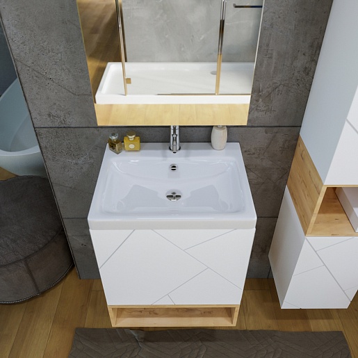 Бриклаер Мебель для ванной Кристалл 50 с нишей белая/дуб бунратти