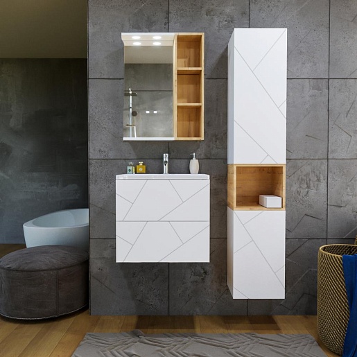 Бриклаер Мебель для ванной Кристалл 60 с зеркалом с полками белая/дуб бунратти