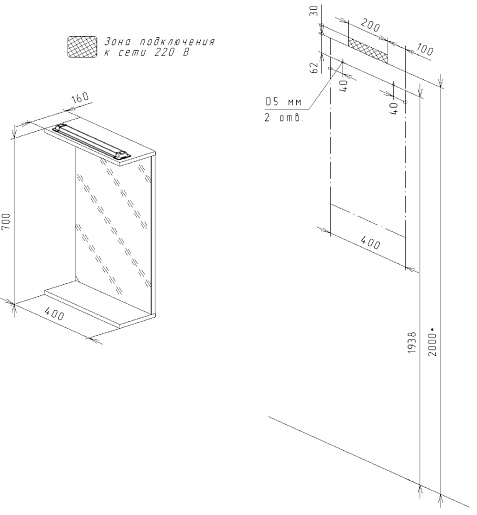 Комплектация: тумба под раковину, раковина, зеркало, шкафчик с полками для зеркала, крепления.