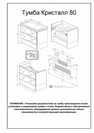 - Тумба под раковину Кристалл 80 с выдвижными фасадами
