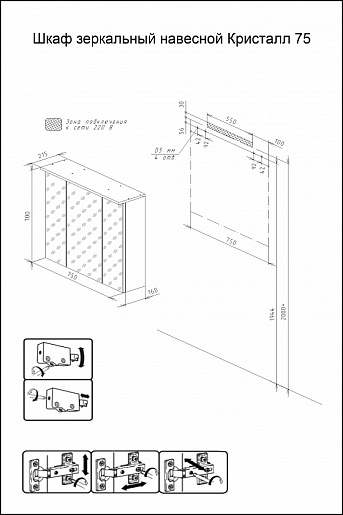 Комплектация: зеркало, шкафчики, встроенная подсветка.
