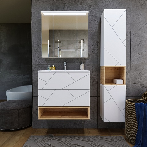 Тумба с раковиной Бриклаер Кристалл 80 с нишей белая/дуб бунратти - арт. 4627125415968 / 4627125414459 / 4627125415906.