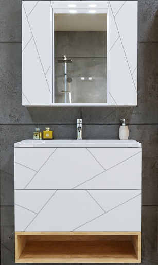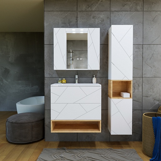 Бриклаер Мебель для ванной Кристалл 80 с нишей с зеркалом со шкафчиками белая/дуб бунратти
