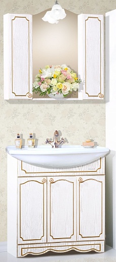 Тумба для умывальника Лючия 80 белый глянец/золото