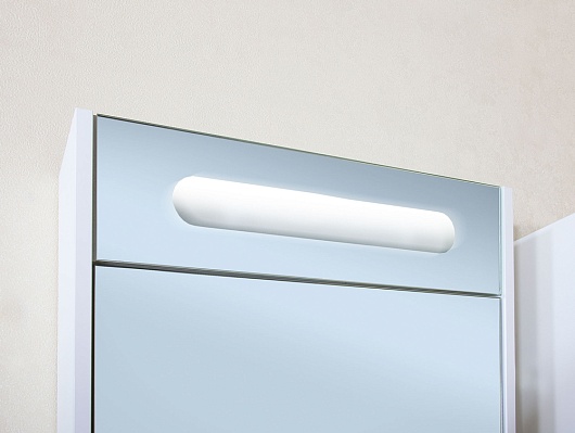 Описание: зеркальный шкаф для ванной с распашной дверцей и внутренней полкой. Встроенная подсветка.