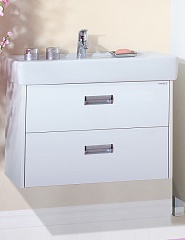 - подвесная тумба под раковину: 2 выдвижных ящика, металлические врезные ручки