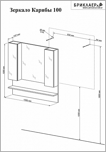 - Зеркало Бриклаер Карибы 100: открытая полка, шкафчики.
