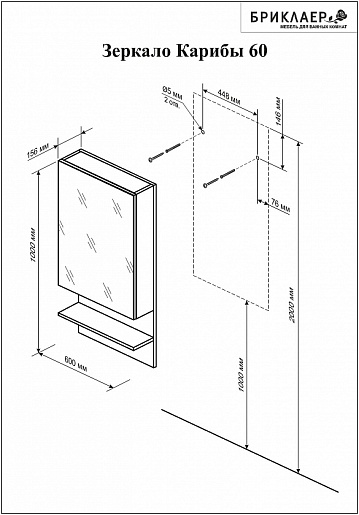 - Зеркало Бриклаер Карибы 60: открытая полка, шкафчик.