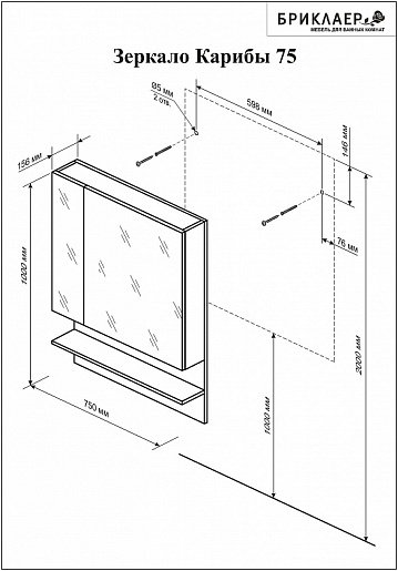 - Зеркало Бриклаер Карибы 75: открытая полка, шкафчик.