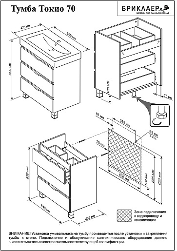 Бриклаер Мебель для ванной Токио 70 R лиственица