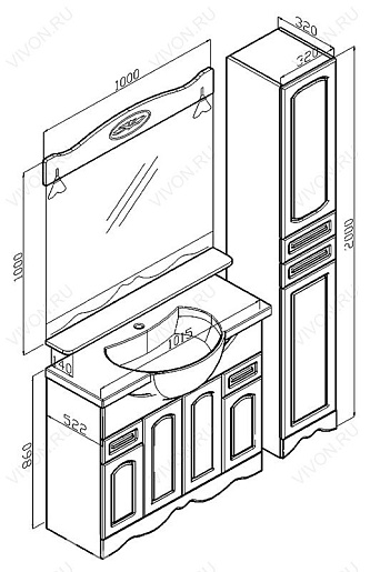 Размеры ШxГxВ: 320х320х2000 мм