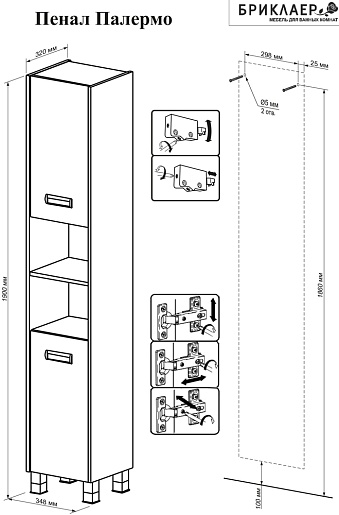 Бриклаер Пенал для ванной Палермо 34 с б/к