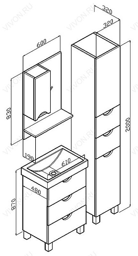 Бриклаер Пенал для ванной Токио 32 с б/к венге/белый