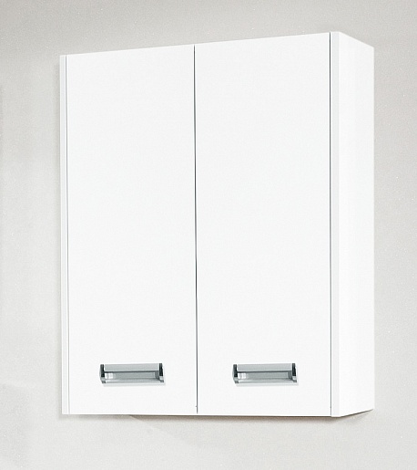 Описание: Подвесной шкаф для ванной с распашными дверцами и внутренними полками. Длинные металлические ручки.