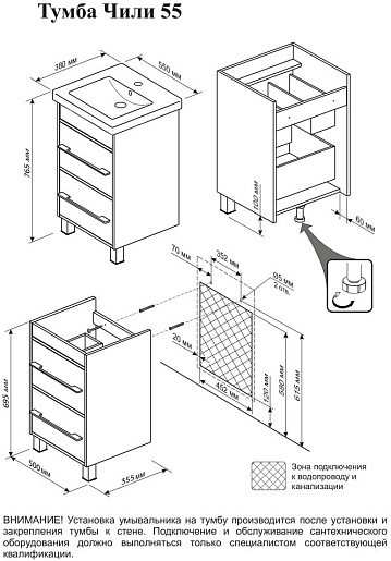 Бриклаер Тумба для умывальника Чили 55 цемент