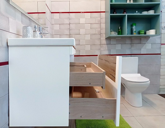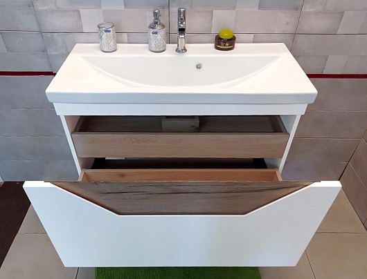 Подвесная тумба под раковину Бриклаер Брайтон 100 белая матовая/дуб кера - арт. 4627125415760.