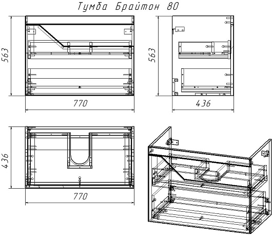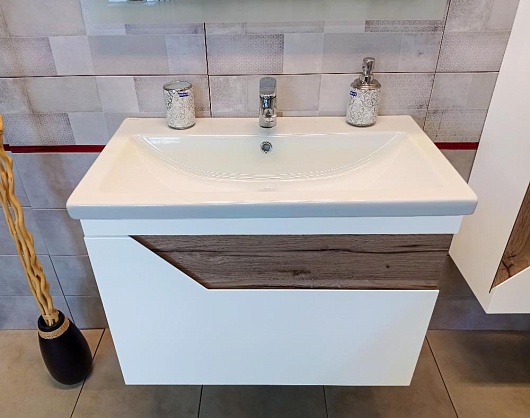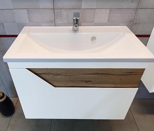 Подвесная тумба под раковину Бриклаер Брайтон 80 белая матовая/дуб кера - арт. 4627125415821.