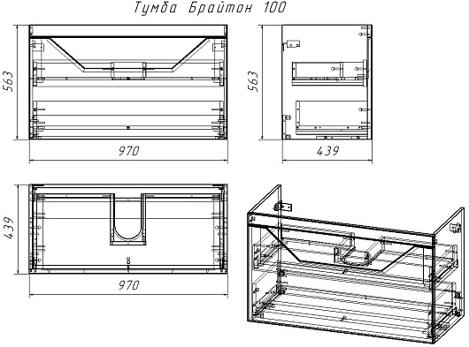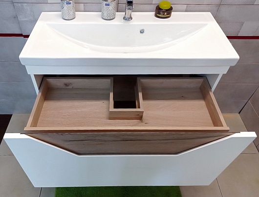 Подвесная тумба с раковиной Бриклаер Брайтон 100 белая матовая/дуб кера - арт. 4627125415760 / 4660105230885.