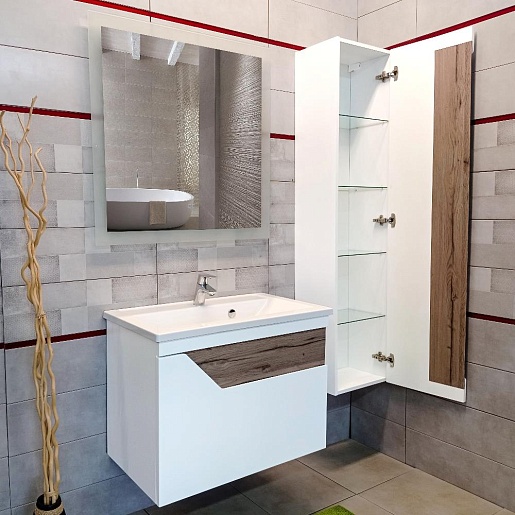 Тумба под раковину Брайтон 80 белая матовая/дуб кера