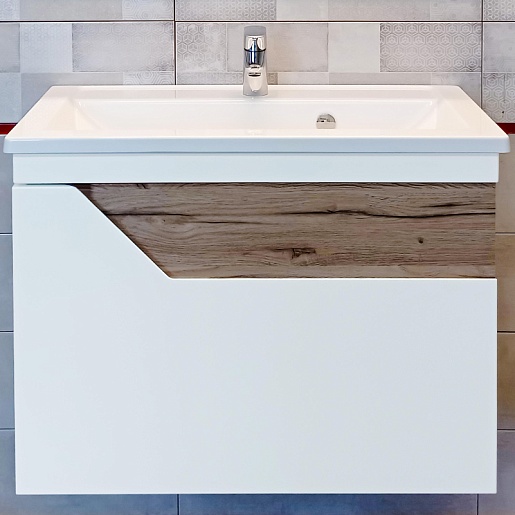 Подвесная тумба с раковиной Бриклаер Брайтон 80 белая матовая/дуб кера - арт. 4627125415821 / 4660105230717.