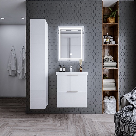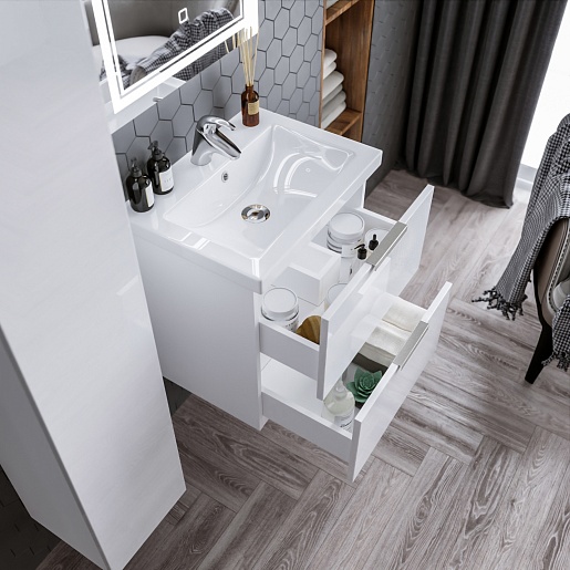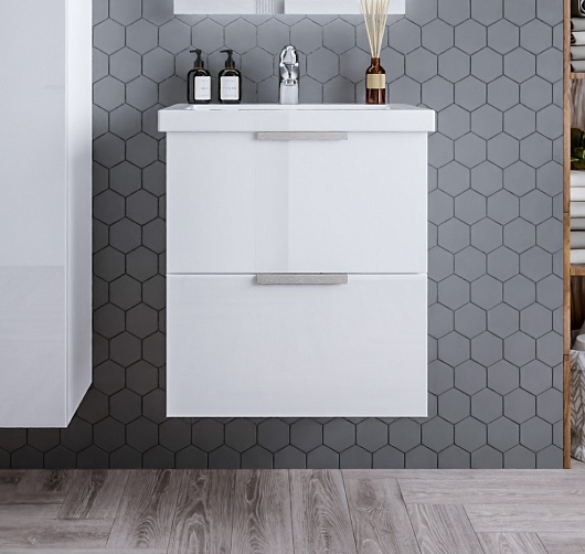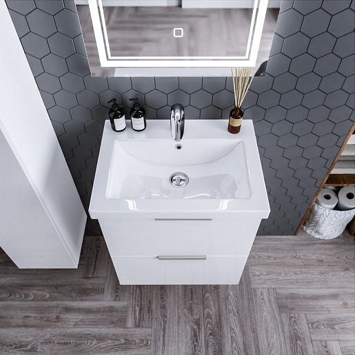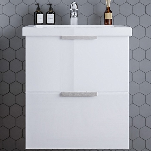 Подвесная тумба с раковиной Бриклаер Хелена 60 белая глянцевая - арт. 4627125416354 / 4627125414435.