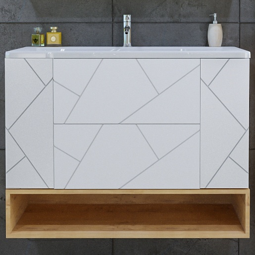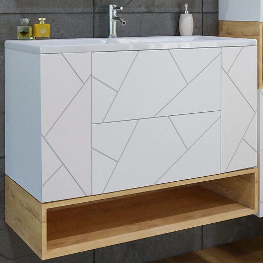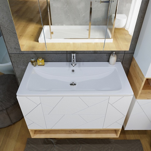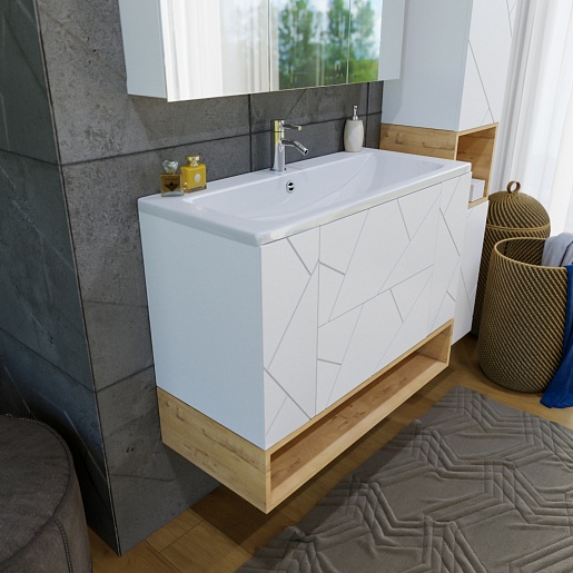 Тумба с раковиной Бриклаер Кристалл 100 с нишей белая/дуб бунратти - арт. 4627125415920 / 4640021065204.