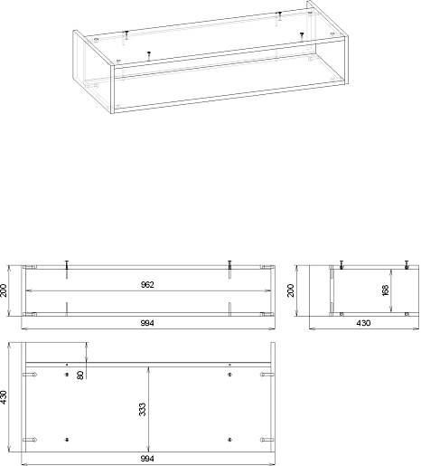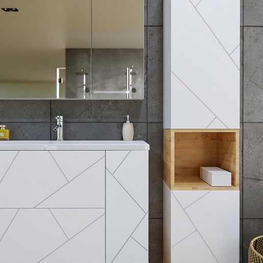 Комплектация: тумба под раковину, раковина, ниша под тумбу, крепления.