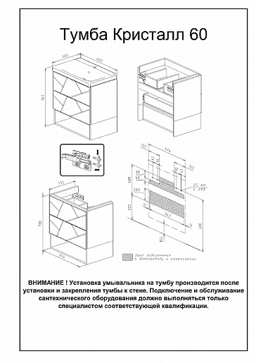 - Тумба под раковину Кристалл 60 с выдвижными фасадами