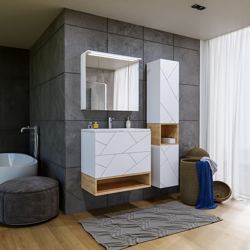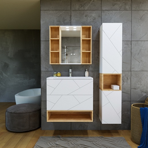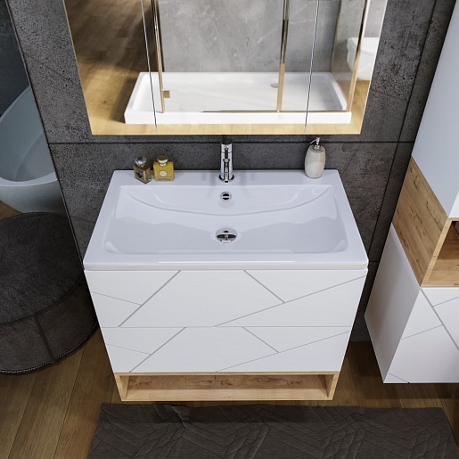 Тумба с раковиной Бриклаер Кристалл 80 с нишей белая/дуб бунратти - арт. 4627125415968 / 4627125414459 / 4627125415906.