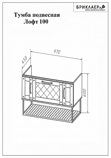 Бриклаер Тумба с раковиной Лофт 100 подвесная